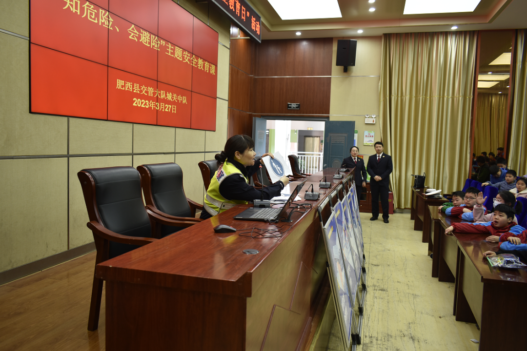 宣讲现场,肥西县检察院未检办干警向同学们发放了《未成年人保护法》、“校园安全小常识”等宣传册和宣传单,还邀请了肥西县交管大队的余晓玲主任、周安东警官现场演示交通标志、提醒交通出行注意事项等小知识,近距离与交警叔叔亲密互动。