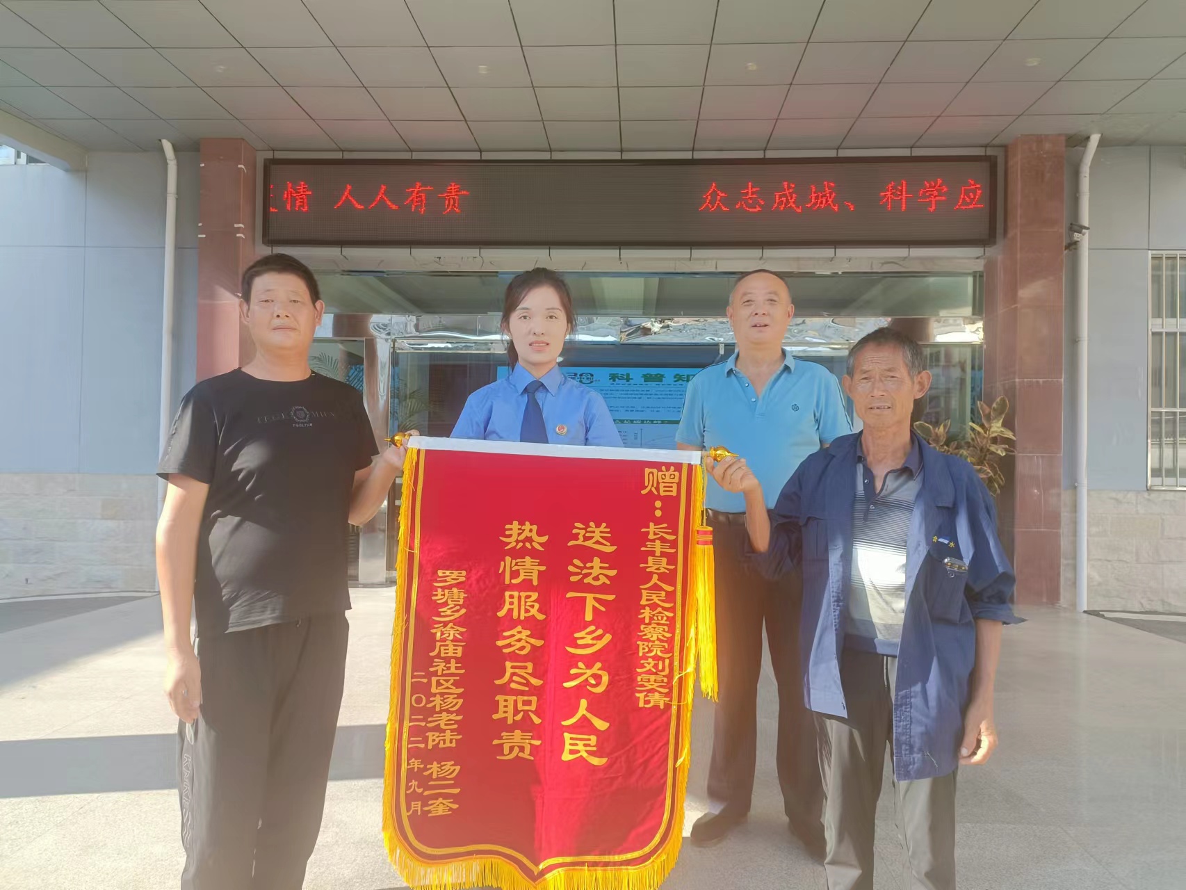 “检察官真是帮我解决了大难题,这下搞养殖不愁借不到钱了!”2022年9月7日下午,beat365官方网站大全_365在线体育_365bet官方网站是多少罗塘乡徐庙社区村民杨某陆将一面写有“送法下乡为人民 热情服务尽职责”的锦旗送到了beat365官方网站大全_365在线体育_365bet官方网站是多少人民检察院第四检察部主任刘雯倩的手中。