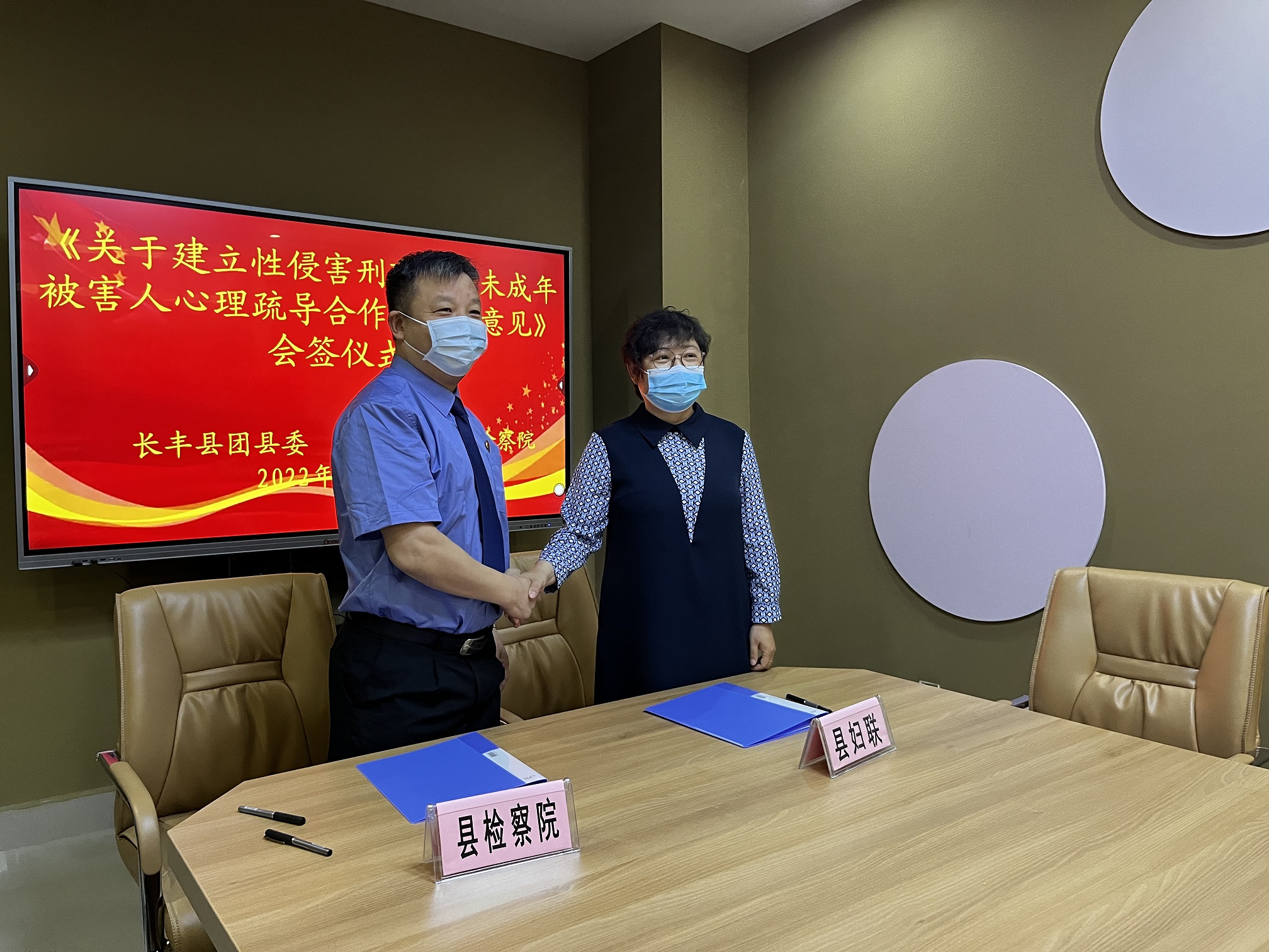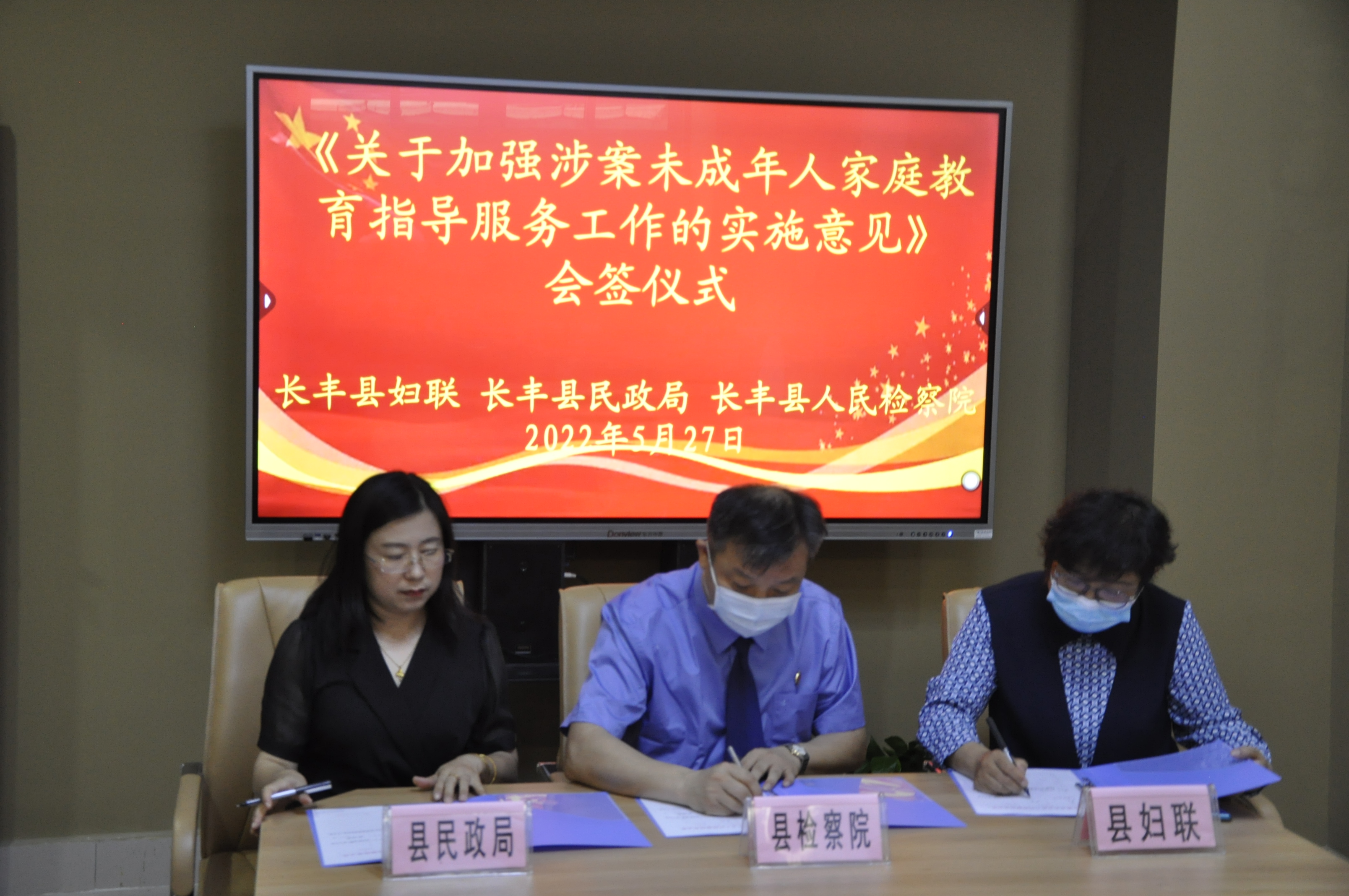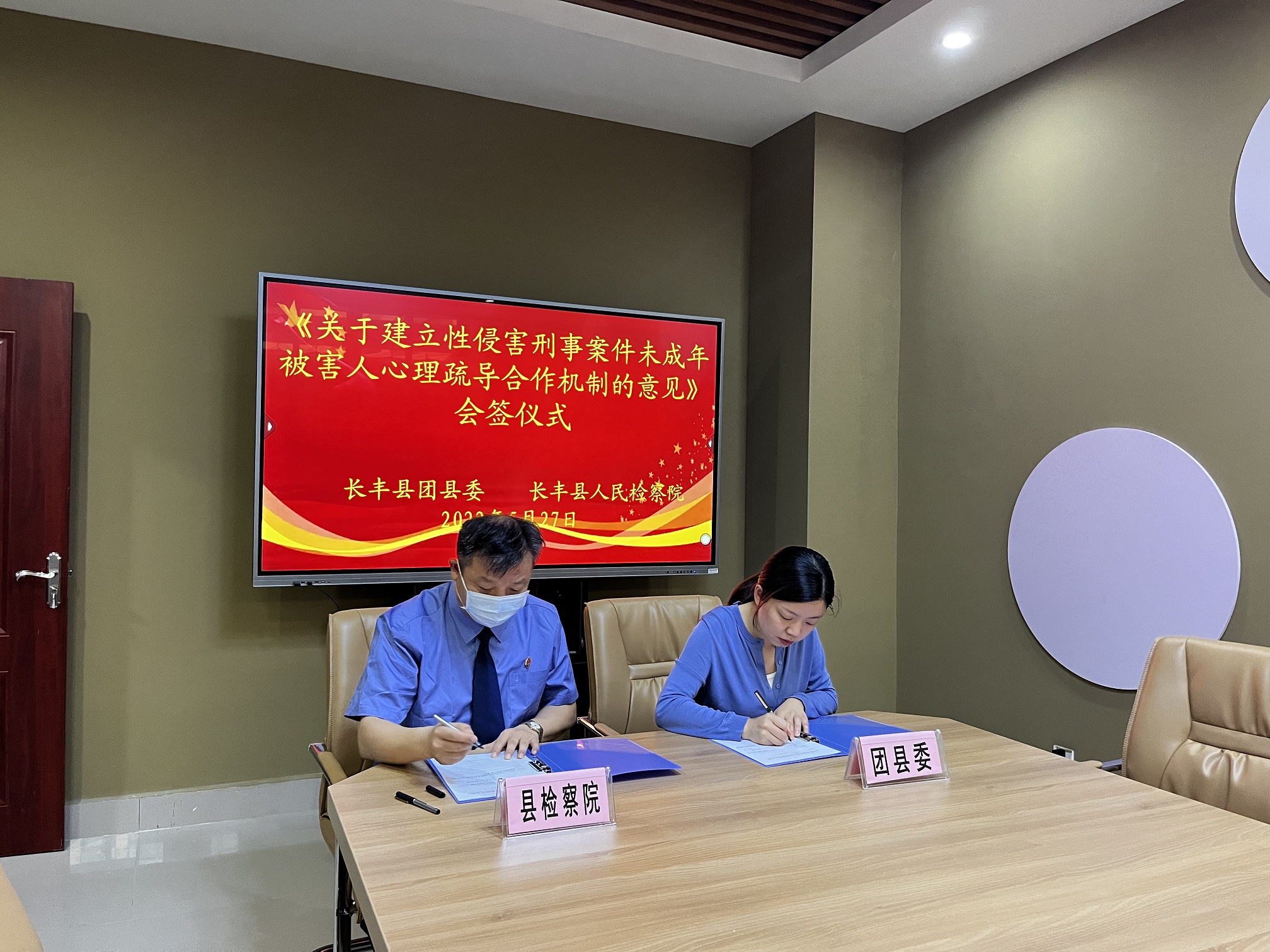 随后,在会议室里,艾云与团县委会签《关于建立性侵害刑事案件未成年被害人心理疏导合作机制的意见》,与县妇联、县民政局会签《关于加强涉案未成年人家庭教育指导服务工作的实施意见》,就未成年人保护工作达成一致意见。
