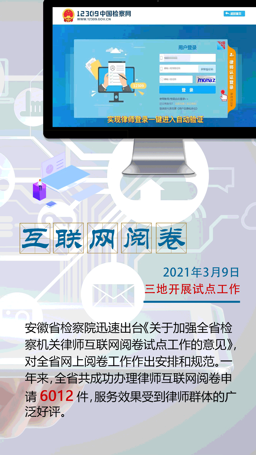 刚刚过去的2021年,安徽检察人踔厉奋发、忠诚履职,检察工作看点多多:出台“双十举措”助推民营经济高质量发展和安徽新兴产业聚集地建设;充分发挥检察职能,持续加大长江生态环境司法保护力度;开展律师互联网阅卷试点工作,将“最多跑一次”升级为“一次不用跑”……“四大检察”十大热词带你速览安徽检察年度工作亮点。