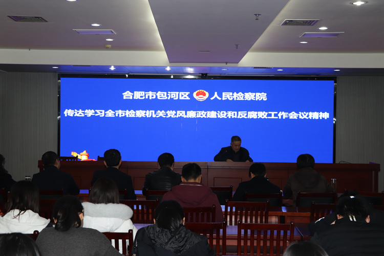 2019年12月25日下午,包河区检察院召开党组中心组理论学习(扩大)会议,迅速传达学习全市检察机关党风廉政建设和反腐败工作会议精神,会议由院党组成员、驻院纪检组组长方毅主持,院党组书记、检察长徐佐钧做重要讲话,全院干警参加了会议。