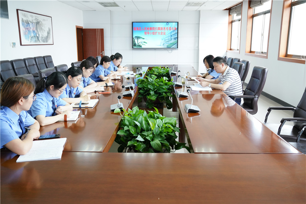当日下午,瑶海区人民检察院立即召开扫黑除恶领导小组(扩大)会议,党组书记、检察长杜先祥,党组成员、副检察长殷斌及扫黑办全体人员、涉黑涉恶案件承办人参加会议。